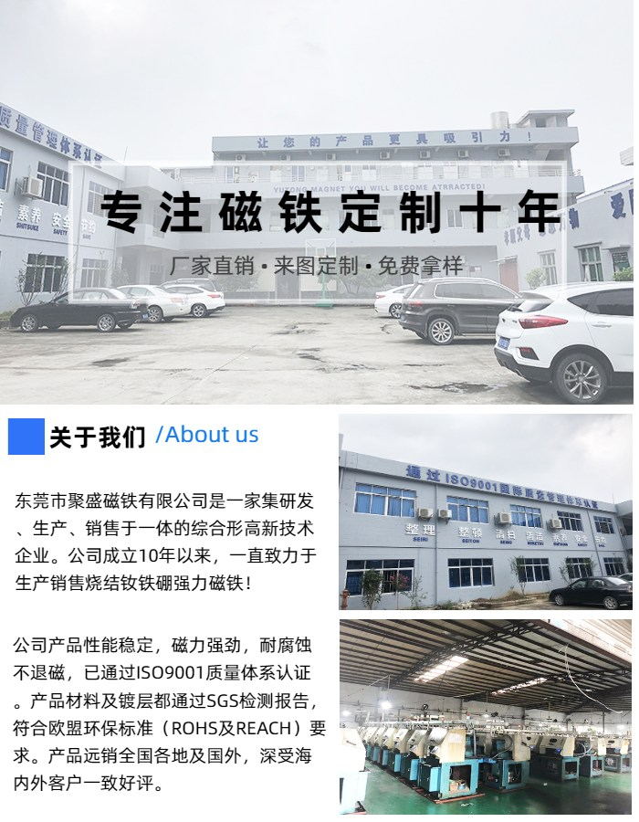 看到了這個(gè)四個(gè)坑,您是否有點(diǎn)擔(dān)心呢?聚盛的出現(xiàn),讓您打消以上的顧慮。1.聚盛磁鐵優(yōu)選符合國(guó)際標(biāo)準(zhǔn)的材料,磁力穩(wěn)定,20年不退磁。2.聚盛150臺(tái)切片機(jī)24小時(shí)不斷運(yùn)轉(zhuǎn),3-5天快速交貨。3.聚盛采用美觀實(shí)用的鎳銅鎳鍍層,三層防護(hù)不生銹,安全環(huán)保。找江蘇強(qiáng)力磁鐵廠家選聚盛,您信心的保障!